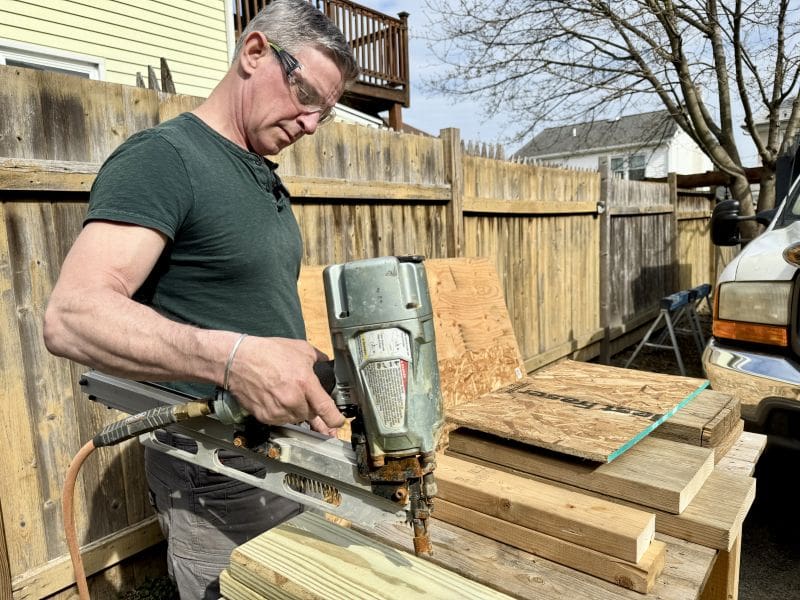 Mark testing the Metabo HPT framing nailer with his favorite hose from Ridgid. And yes, it’s the best framing nailer.