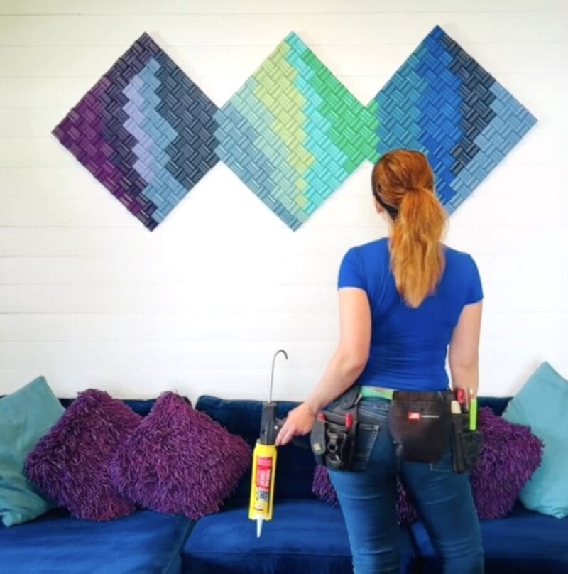 I let the Total Tech cure overnight, and then I attached a series of three French cleats to the back of the wall art. This allowed me to mount the wall art without having any visible fasteners.