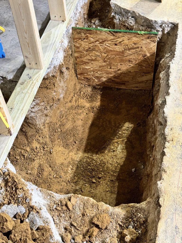 It also means digging a trench, so all that dirt and bits of concrete need to go somewhere. I then store most of mine outside the house somewhere. Laying out a few sheets of ¼-inch plywood makes it easier to scoop up later.