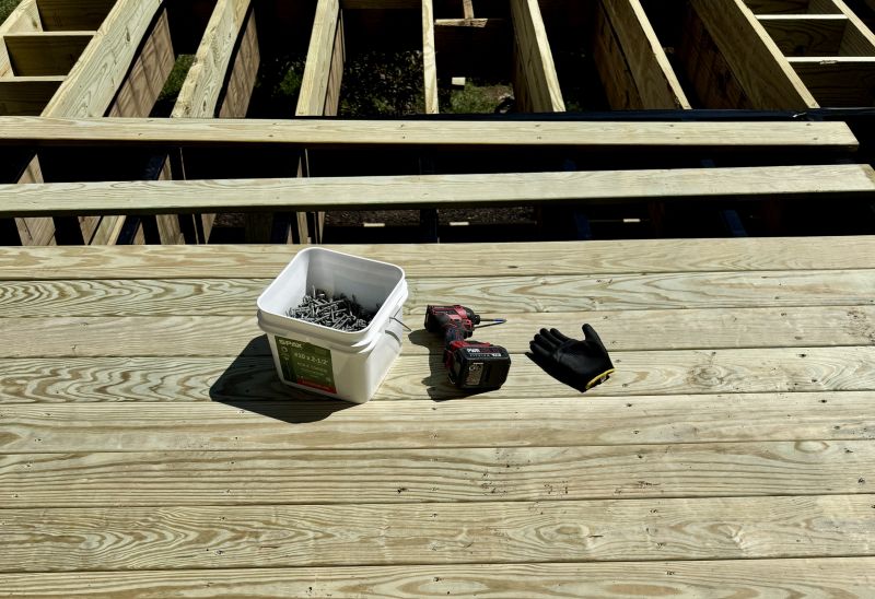 - Drove #10 x 2 1/2-inch screws in hardware and decking, and #10 x 3-inch screws for general construction and repairs.